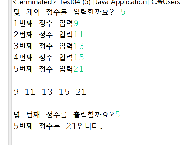 모두 저장되었다면 정수를 하나 더 입력받아서, 해당 번째에 저장된 정수 출력