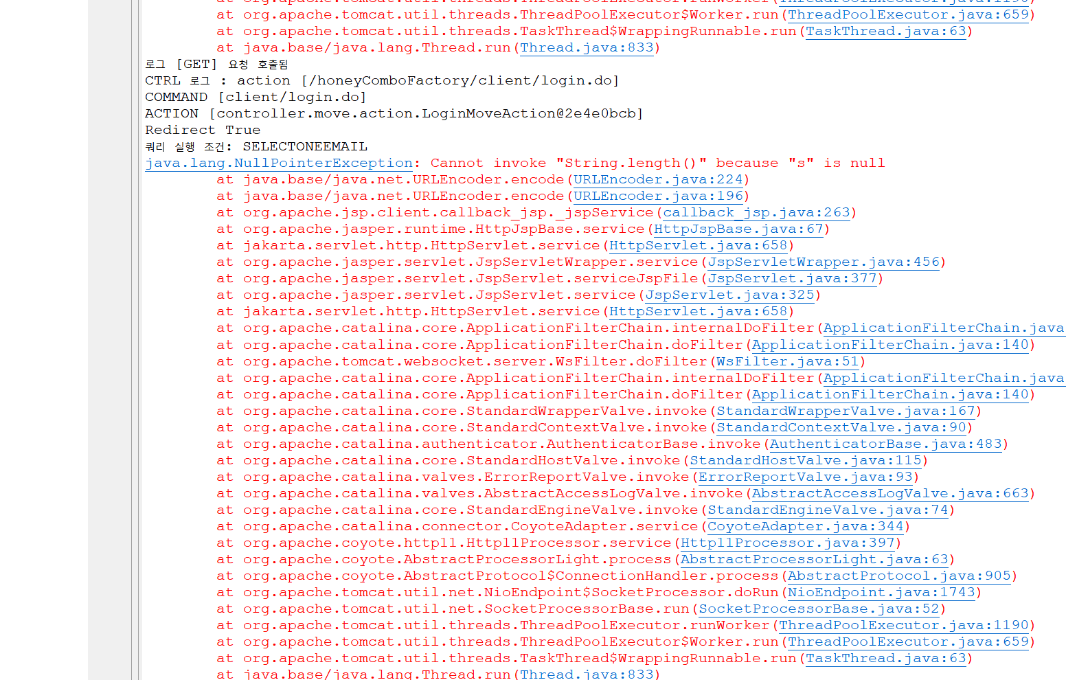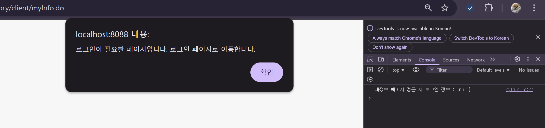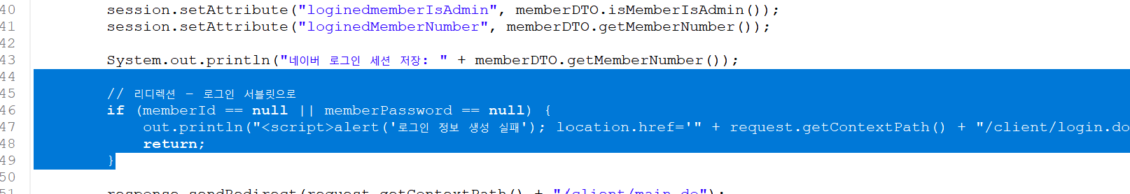 이렇게 로그인 서블릿이랑 세션 저장할 값 맞춰주면 네이버 로그인한 사용자도 정보란을 이용할 수 있을거라 생각했는데 로그인 후 메인으로 나올 때부터 null 값을 갖고 나오고 있다.