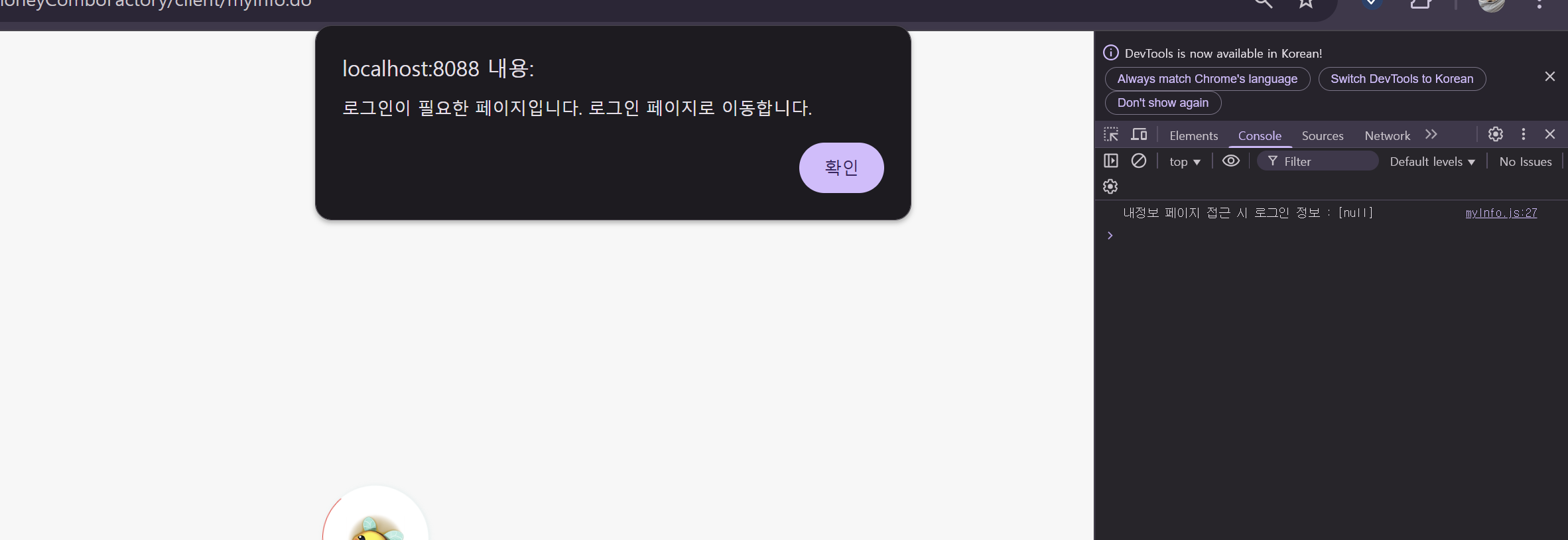 이거는 아이디랑 비밀번호 랜덤 생성해서 네이버 로그인을 시켰는데 내 정보란에 들어가니 세션에 아이디, 세션번호, 관리자 여부가 null로 나오는 상황.