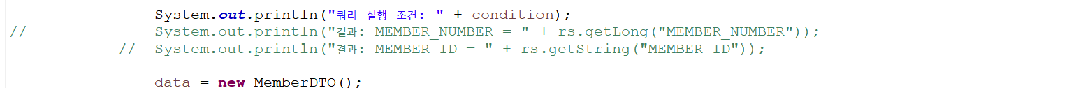 while (rs.next())보다 rs.getLong("MEMBER_NUMBER") 먼저 사용해서 발생한 에러.