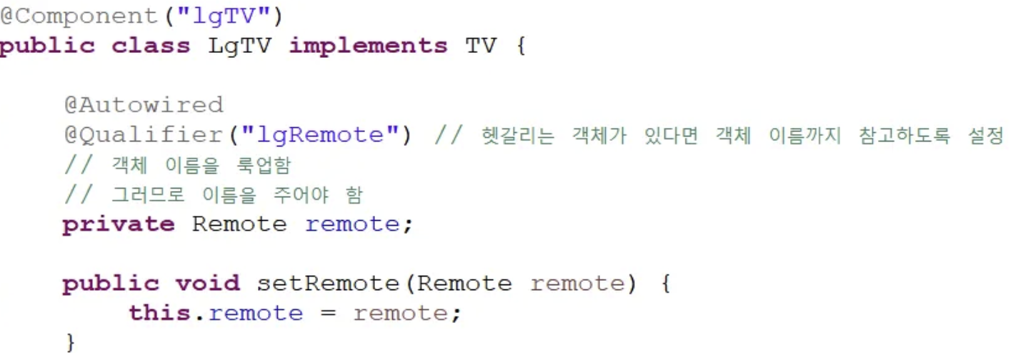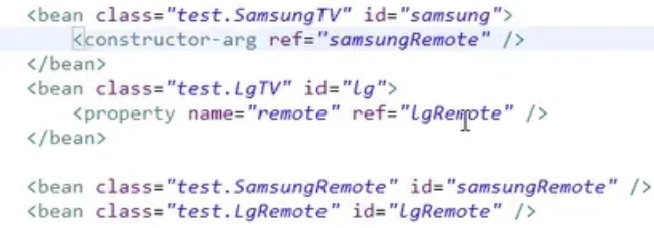 - 이때 ref="lgRemote"는 이미 스프링 컨테이너에 등록되어 있는 Bean ID를 참조해야 함.