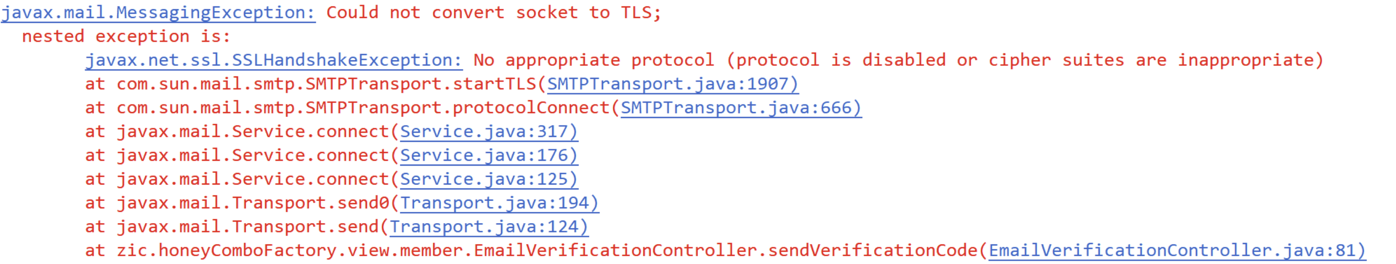 어제까지 잘만 되던 이메일 전송이 갑자기 안되는 에러 발생.