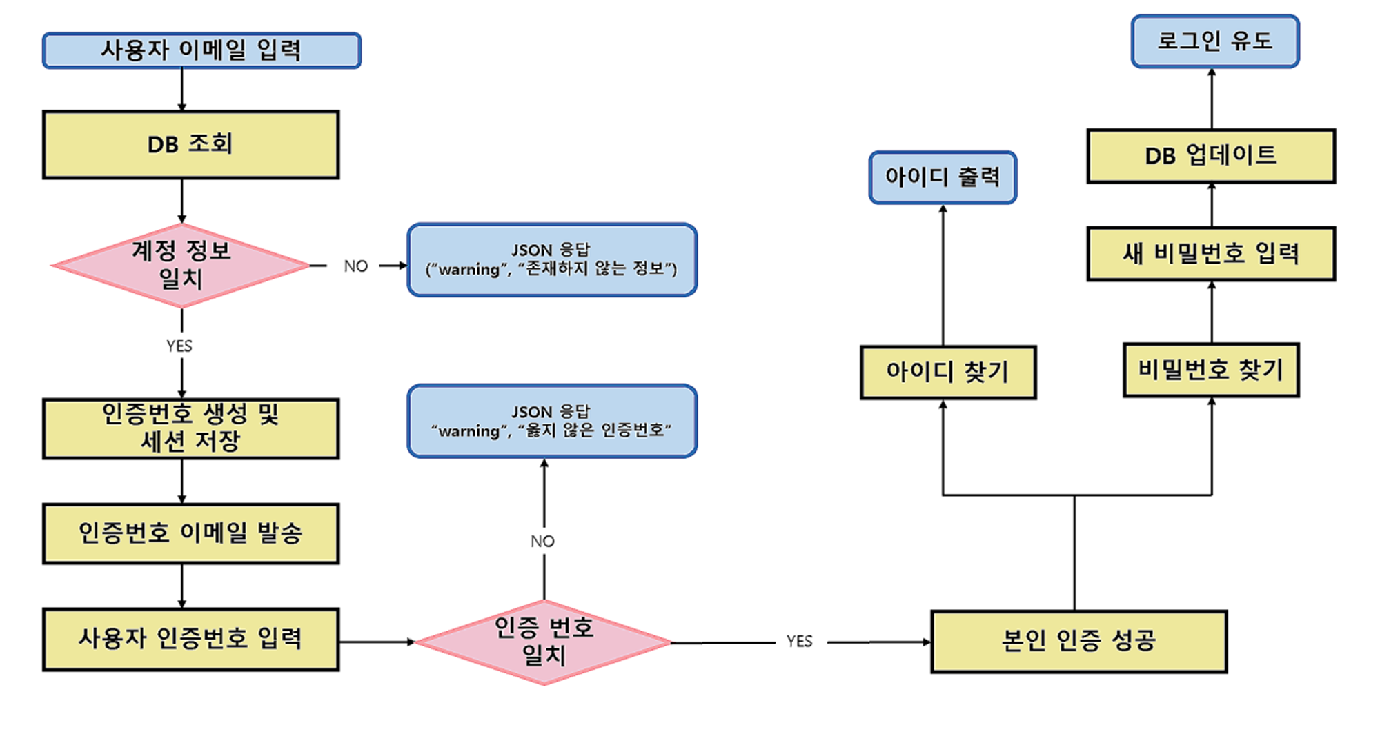 프로젝트에서 직접 구현한 API들의 과정을 플로우 차트로 나타내보았다.