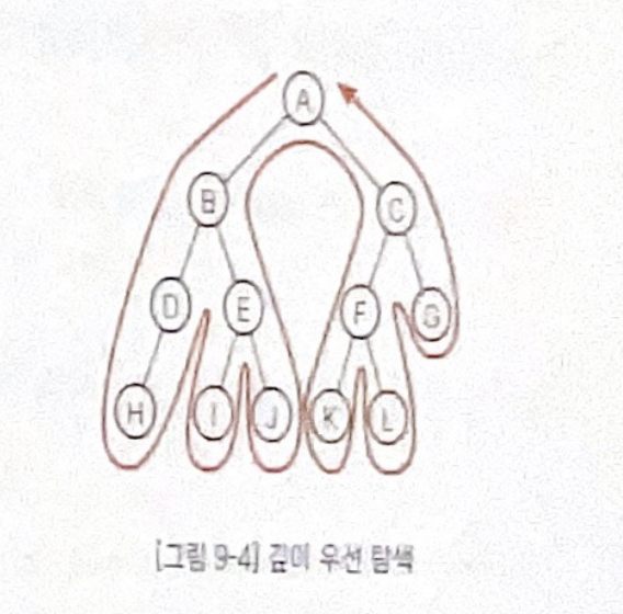 - 리프에 이를 때까지 아래로 내려가며 탐색. 리프에 도달해 더 이상 탐색할 곳이 없으면 부모에게 돌아갔다가 다시 자식 노드로 내려간다.