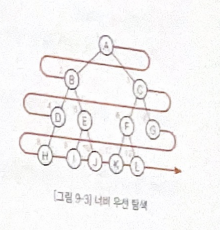 낮은 레벨에서 시작해 왼쪽에서 오른쪽 방향으로 따라가다가 한 레벨에서 탐색이 끝나면 다음 레벨로 내려간다.