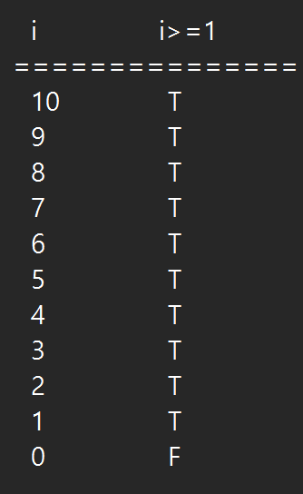 10부터 시작하여 i = 0이 되면 while문을 탈출한다.