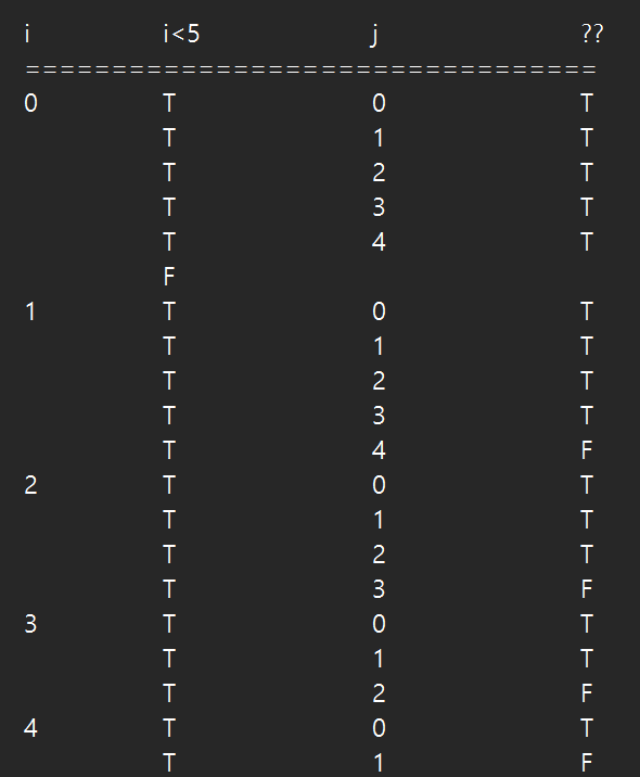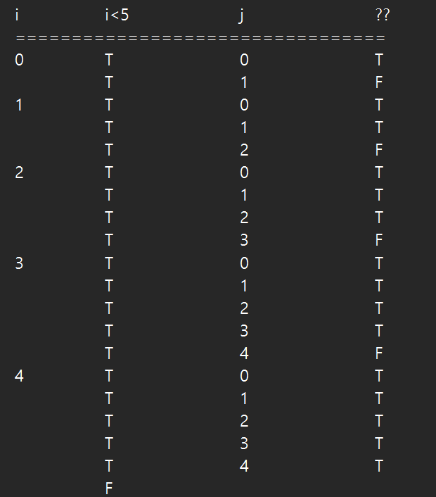 -> 내부 while문 조건식 자리를 비워놓고 디버깅표를 그리며 조건식 찾기!