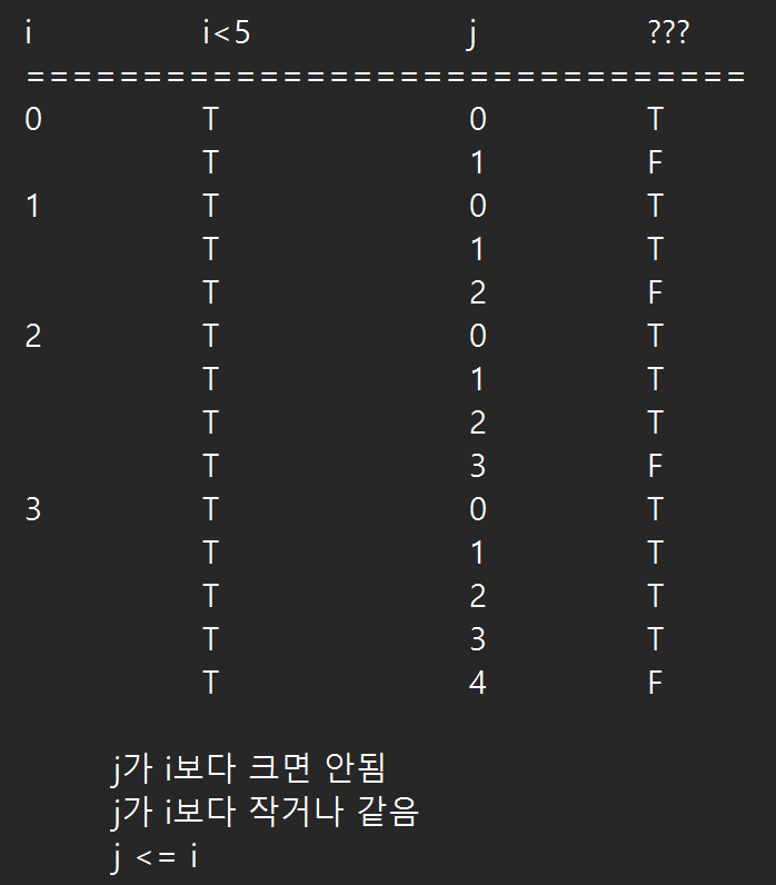 별이 한 줄에 5개씩 찍혀야 하므로 j < 5