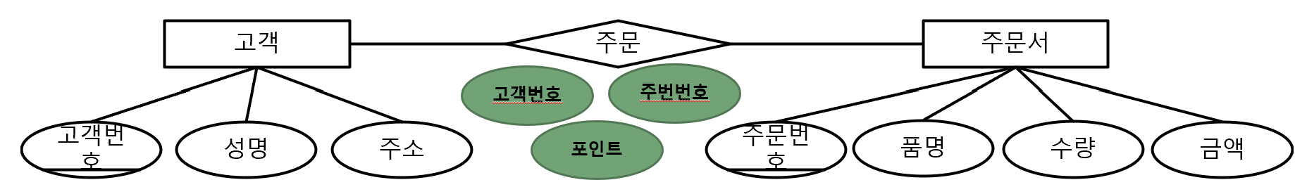 ③ 관계(Relationship) : 개체간의 관계 또는 속성 간의 관계. 1:1관계, 1:다 관계, 다:다 관계 등