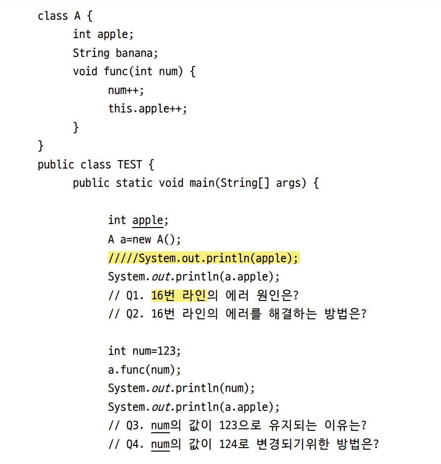 문제에서 A 클래스의 num과 main함수의 num은 다른 값을 가진다.